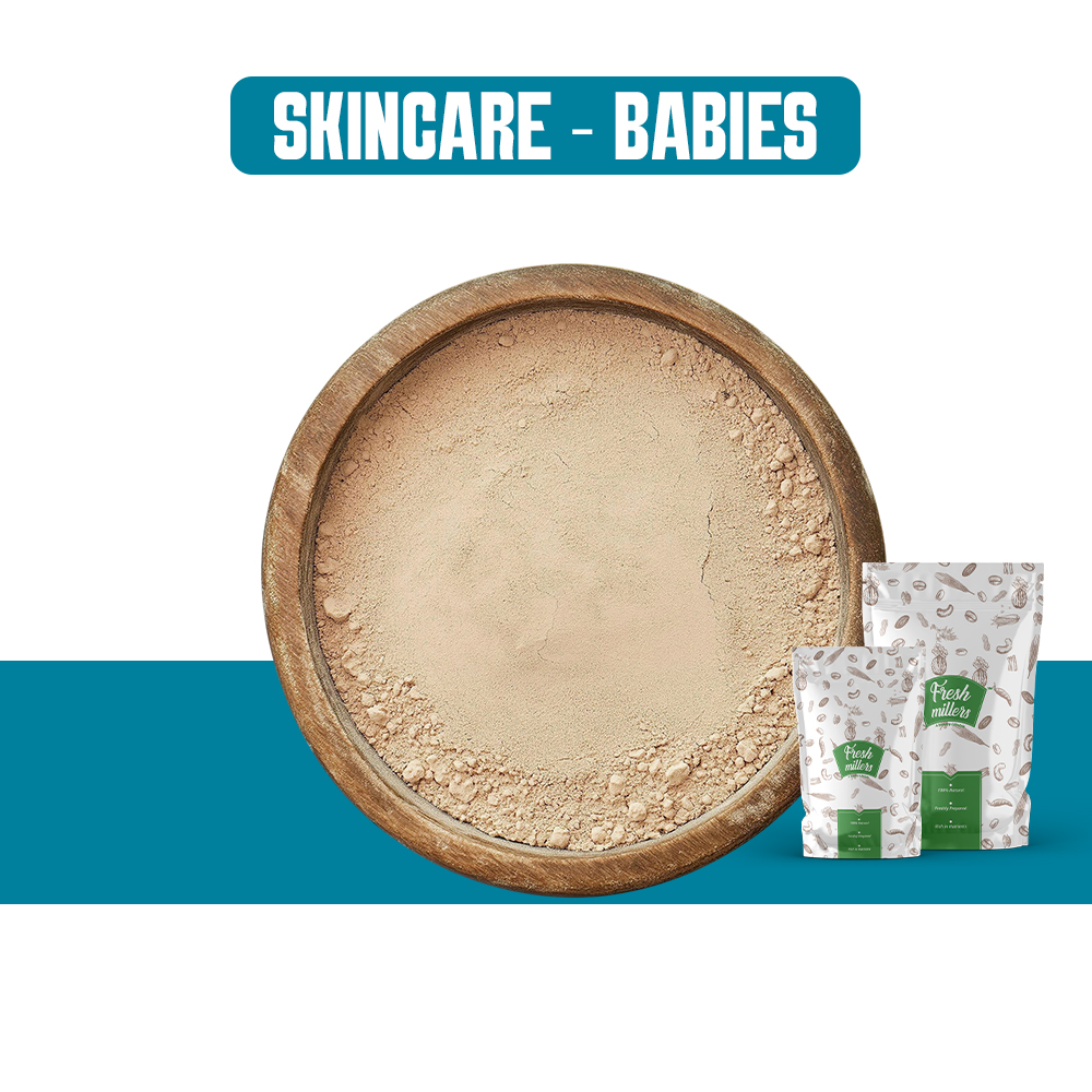 Skincare (Babies) from House of Fresh Millers is a 100% natural, freshly prepared skincare solution made with Green Gram and Channa Dal. Specially crafted for delicate baby skin, this gentle formula nourishes, softens, and enhances skin glow while maintaining traditional skincare benefits. Free from harsh chemicals, it ensures safe and soothing care, keeping your little one’s skin healthy and radiant.